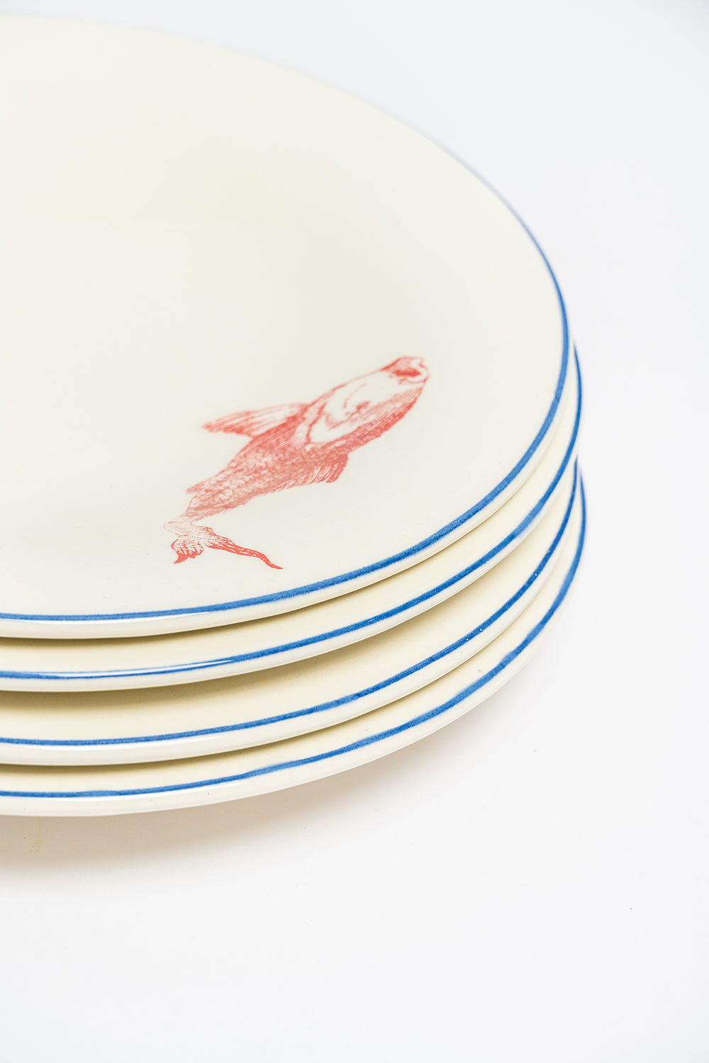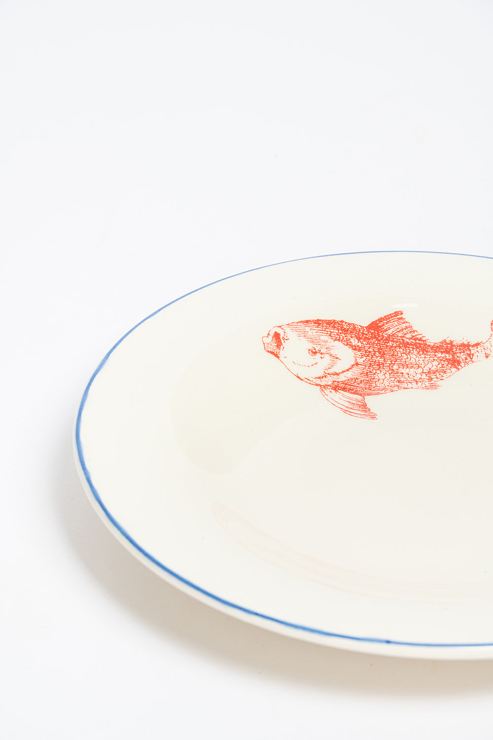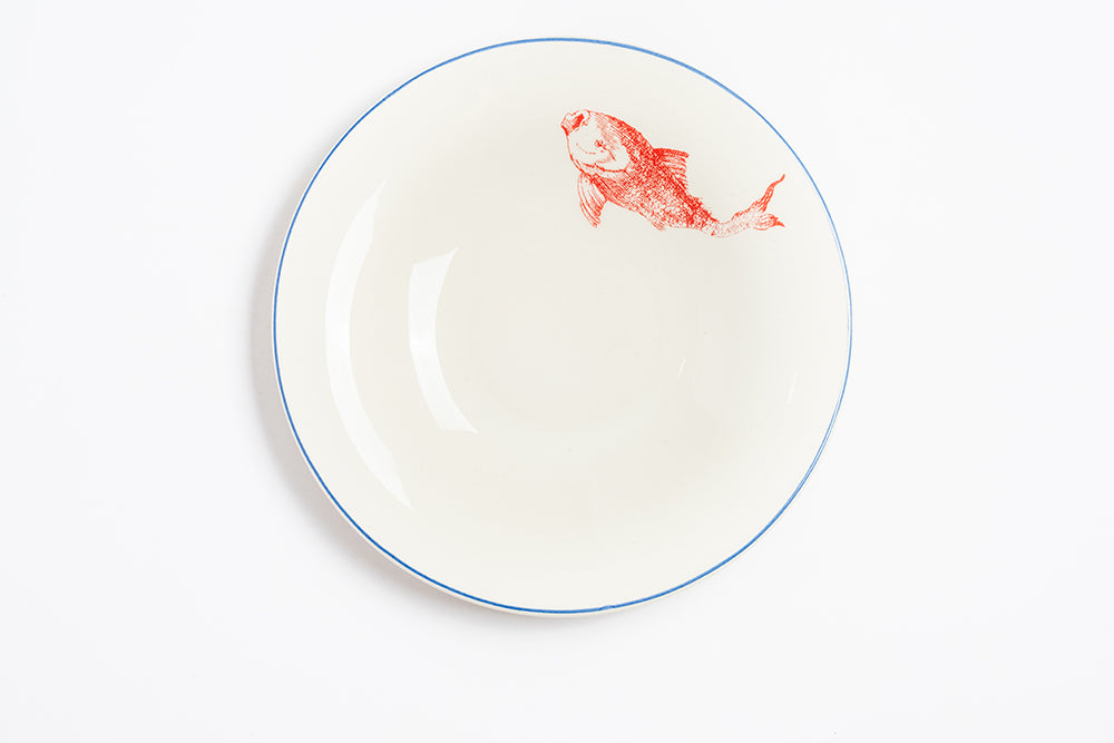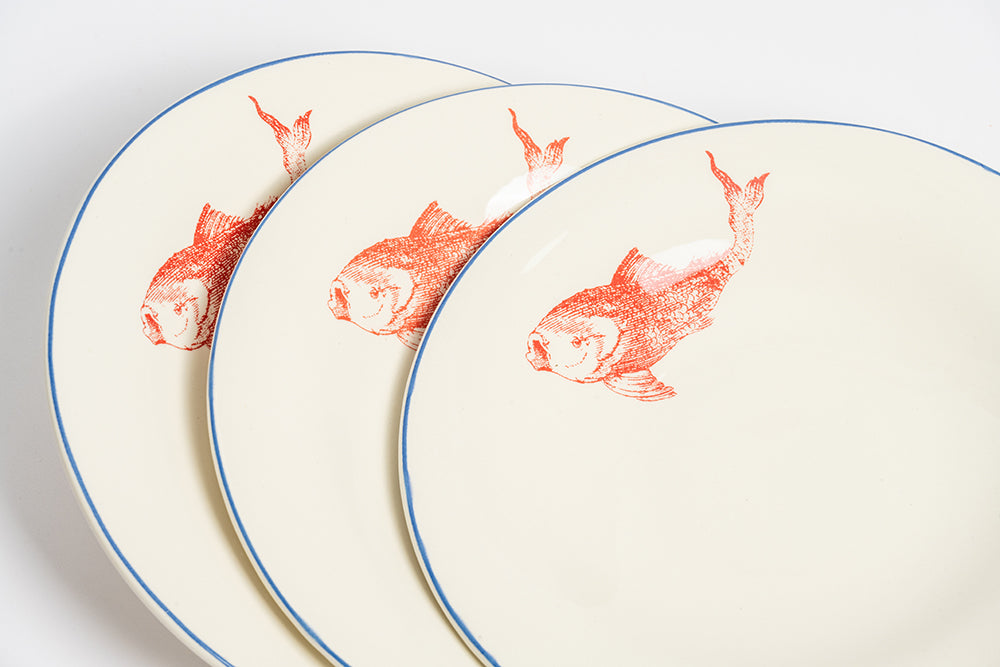 This plate is from a reissue of the Viena Peces collection, a traditional ceramics line from La Cartuja Sevilla in Seville, Spain since 1841. Handmade and considered a collector's item, it showcases the exquisite craftsmanship and rich history of the region.